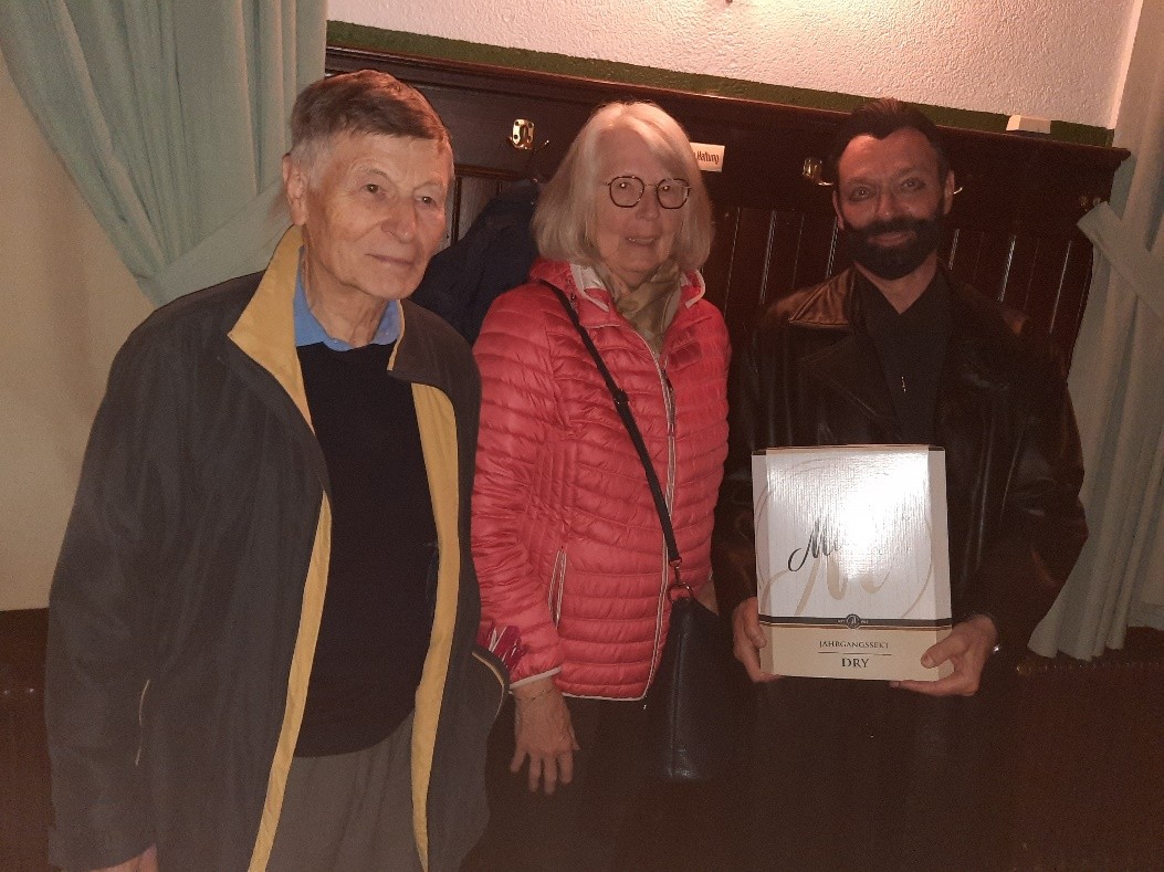 Klaus Thiessen, Erika Deuschel. Bettina Lock und Walter Lenz bedankten sich mit einem Kasten Sekt beim Vorstand der Old Tabler für die Einladung und die Gastfreundschaft.